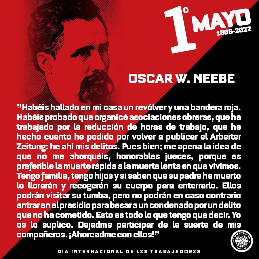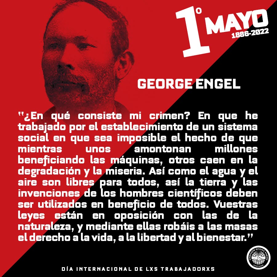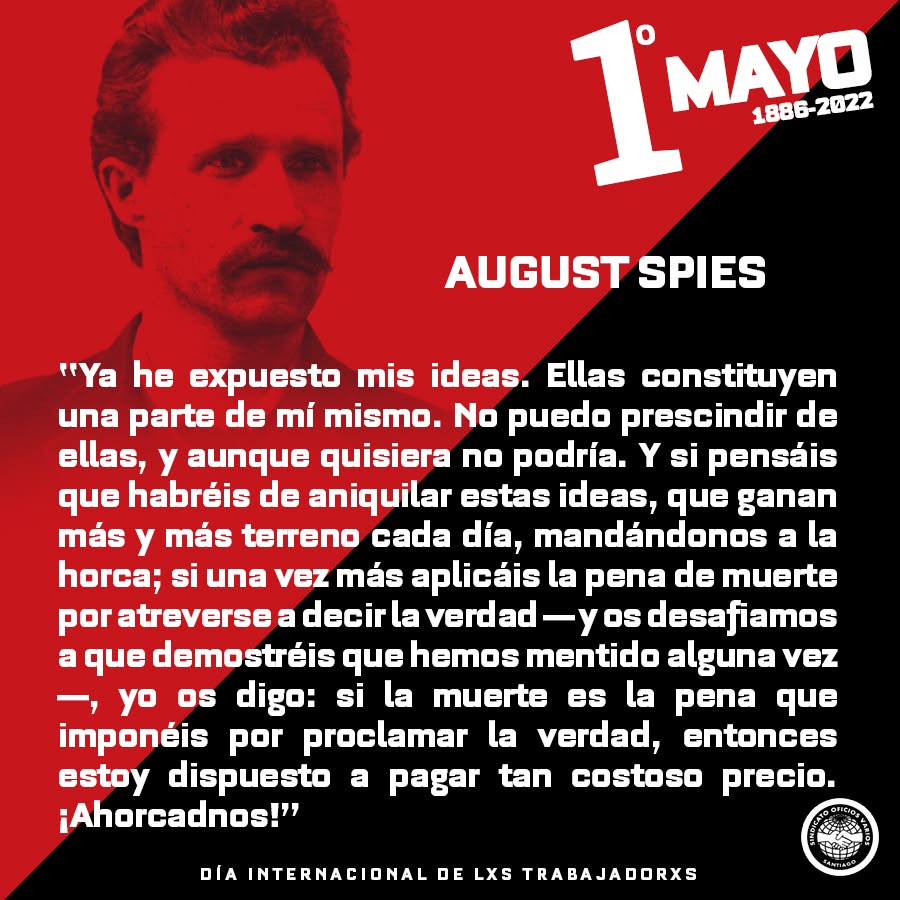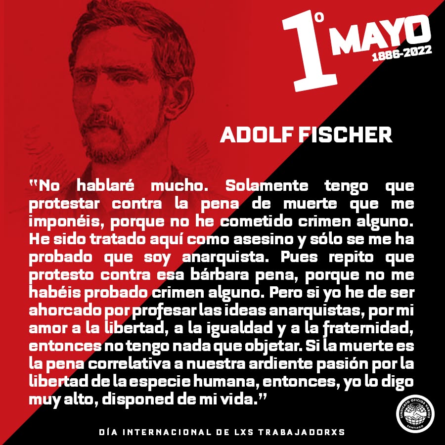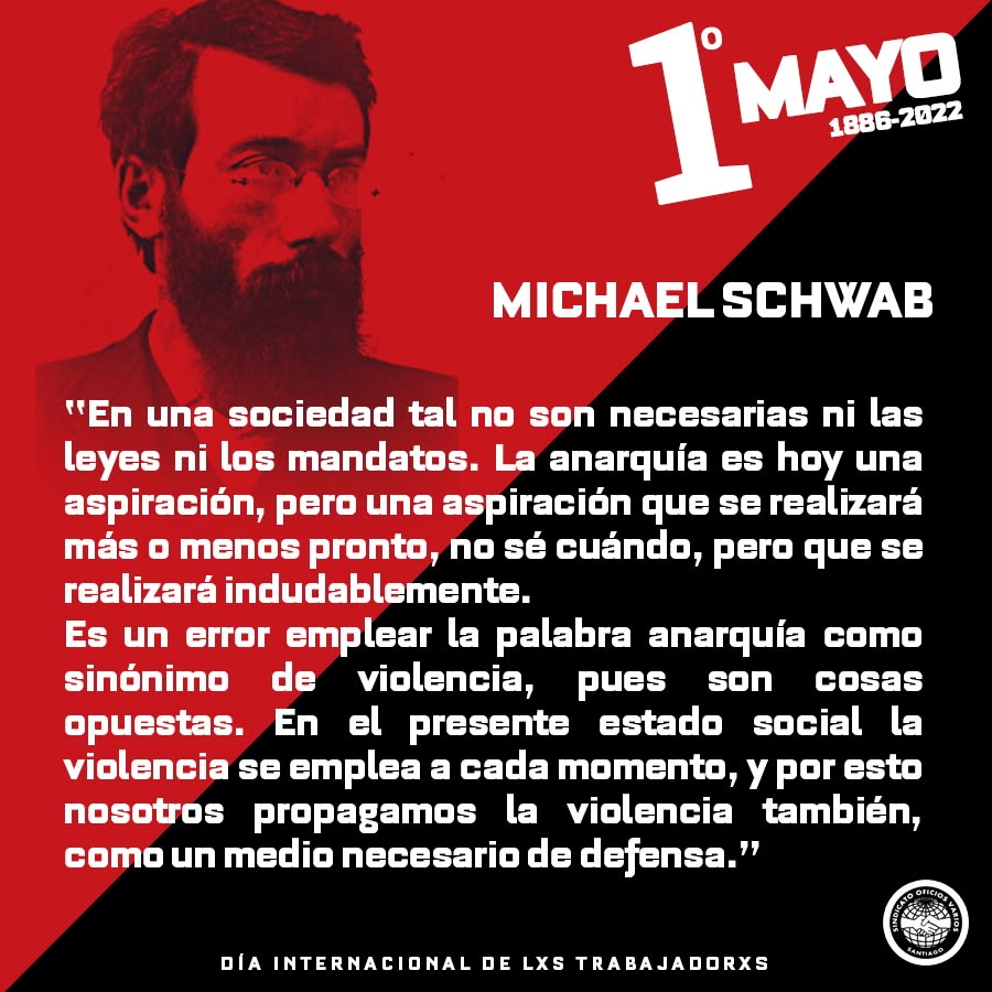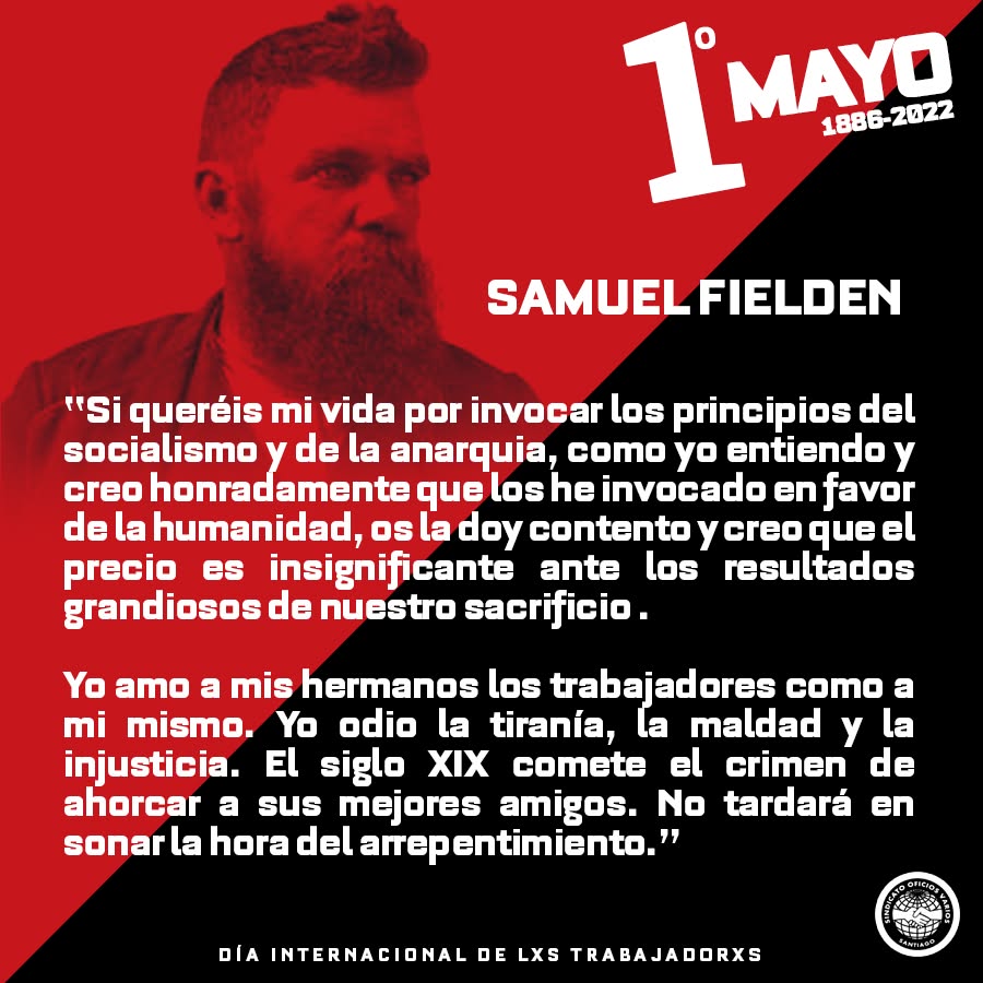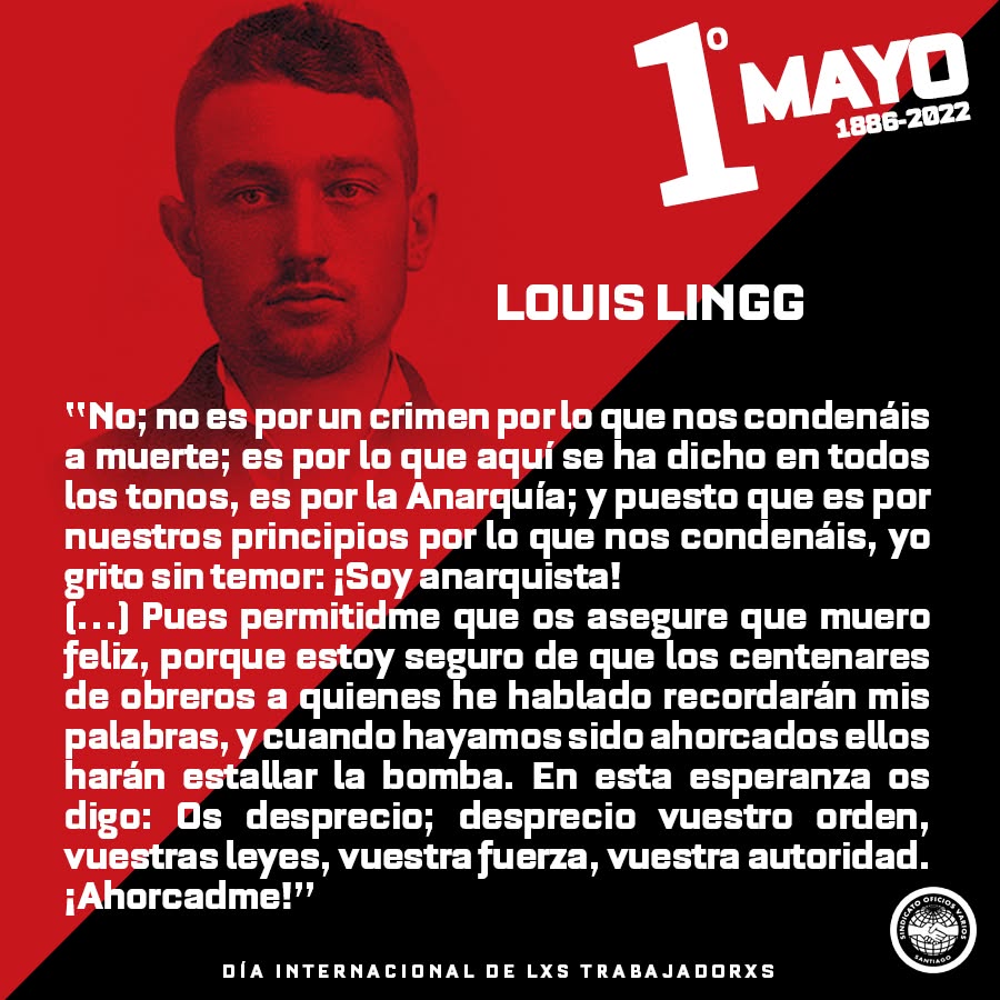 Los empresarios dicen que es el día del trabajo, los socialdemócratas que es una fiesta pero nosotrxs sabemos que es y será un día más de lucha y resistencia en memoria de lxs trabajadorxs que cayeron luchando por un mundo libre de explotación.”